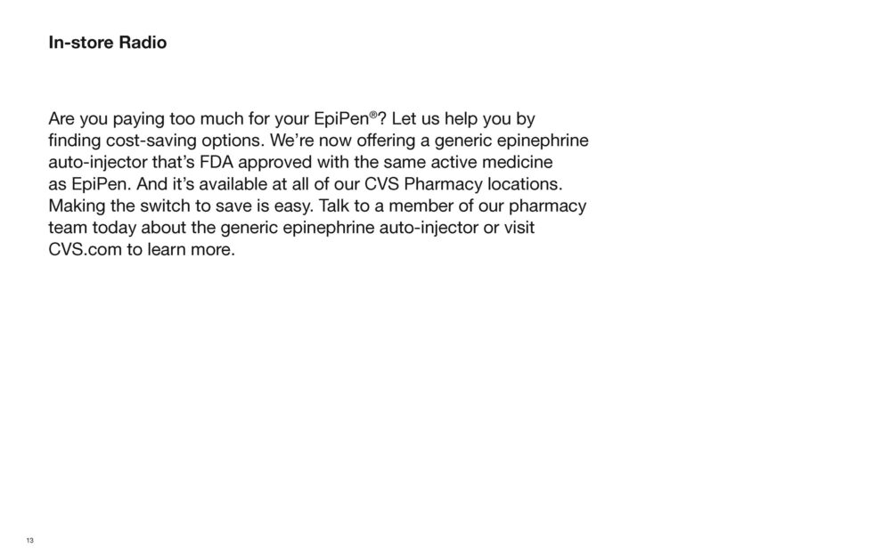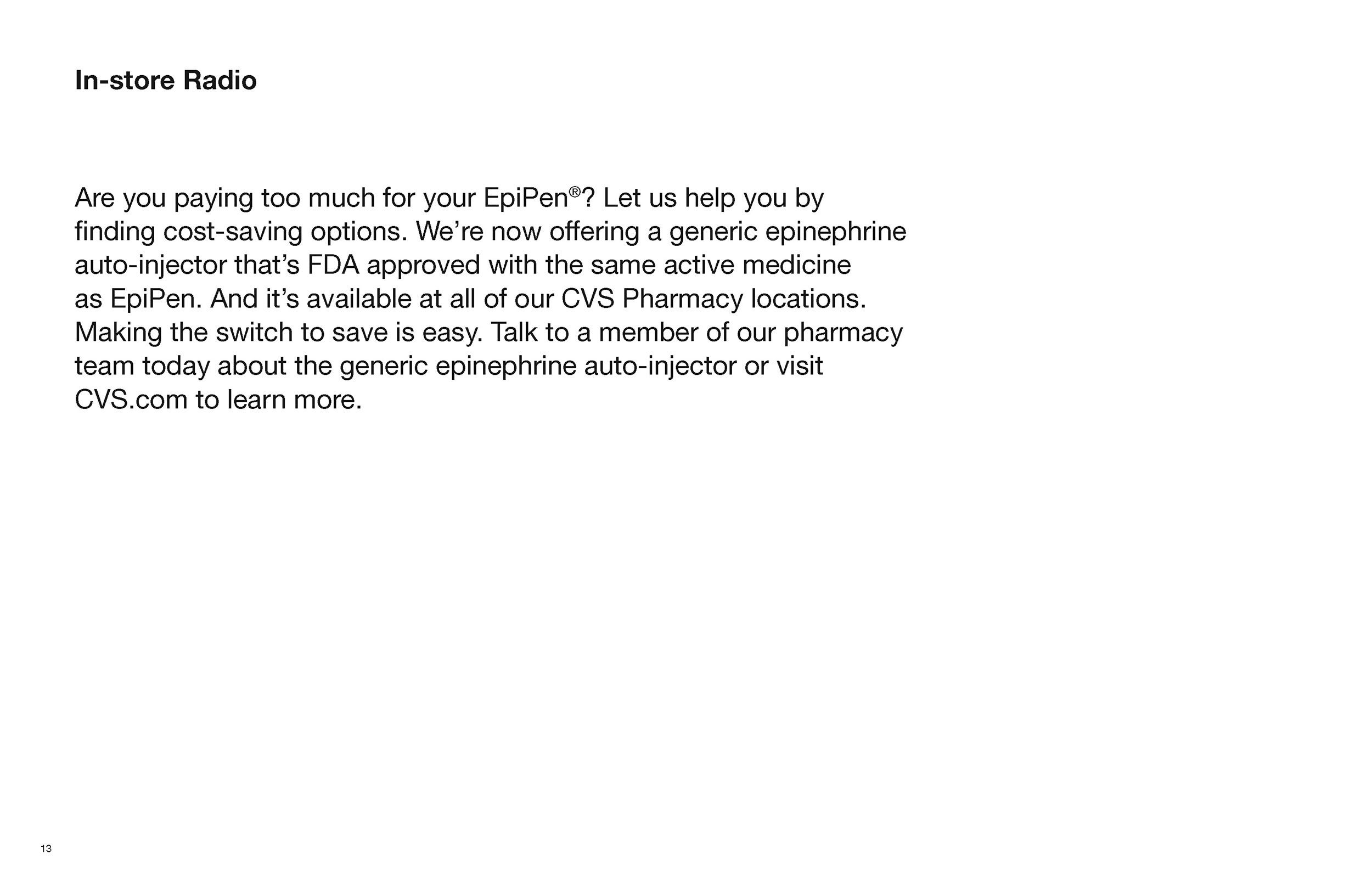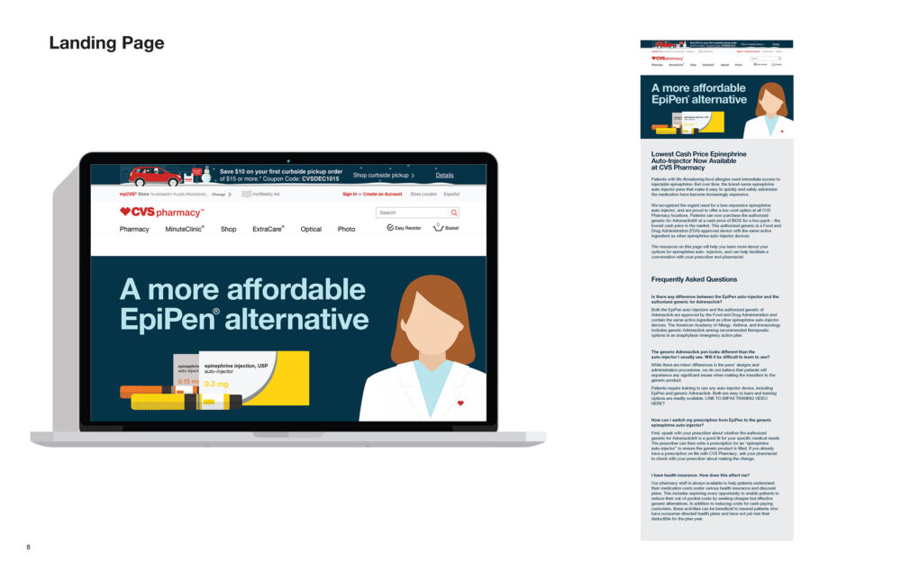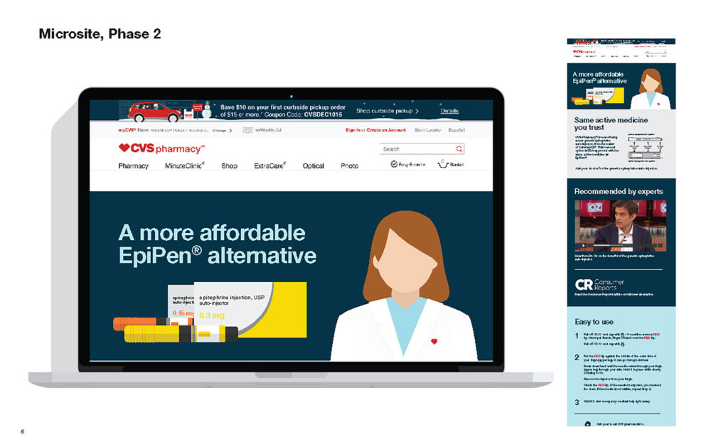 With the high cost of the api-pen we needed to come up with a solution and save our customers money. With alternative options out in the market there were effective and cost saving alternatives to EpiPen and the EpiPen that delivered results that you could trust. We wanted customers to ask their doctor for the generic alternative so they could save money. With this campaign we created in-store print, landing pages, social, digital and radio.